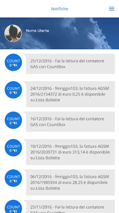 With CountBox have under control the trend of consumption of your supplies of AGSM Energy and Water Veronesi; plus you can view the readings and the graph with the trend in electricity, gas and water.
