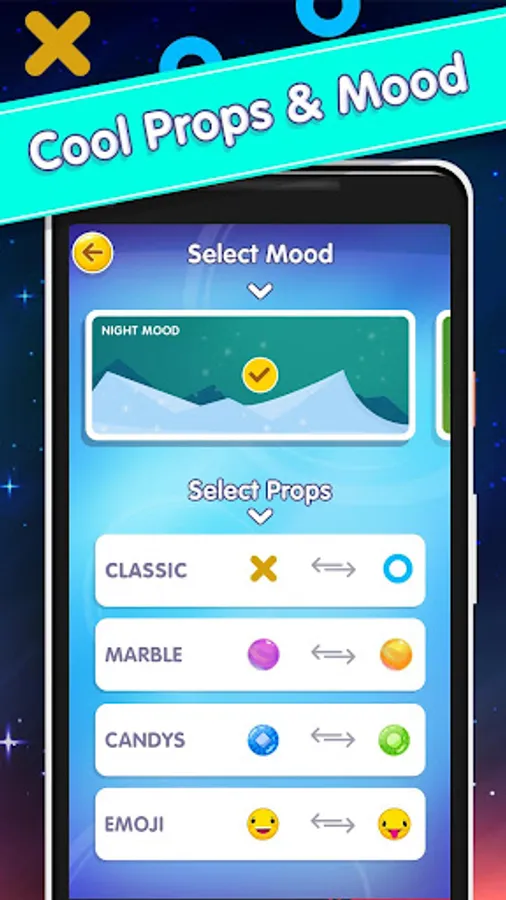 On the other hand, attractive graphics and soothing sound will make sure that you can play for hours without even checking the time. Not just O and X, but you can play with Candies, Marbles and even Emojis.