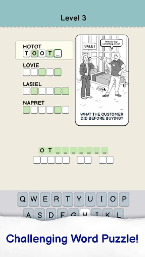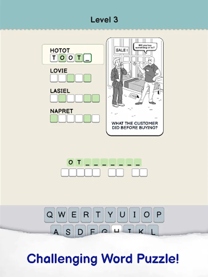 Your task is to carefully guess every word within the level and then combine those words to form the hidden phrase.