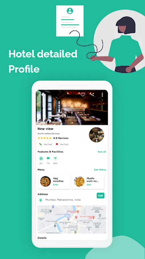 * Restaurant details option with which the users can view the complete details of the restaurants such as cuisine, working hours, parking details, seating and booking option, etc.