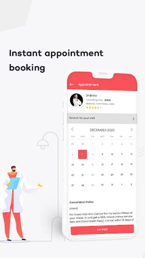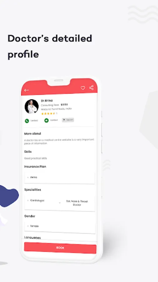 Detailed doctor profile that allows the doctors to provide complete details about their specialty, availability, ratings and reviews, hospital location, and so on.