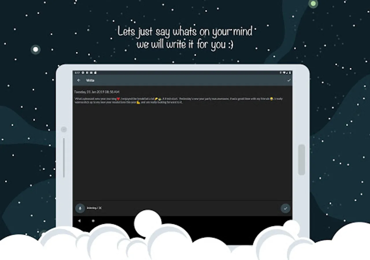 The app also support voice input, you can just use your voice to write articles. Because not all people like to use keyboards but you can use your sweet voice to create a diary note. Speech to text option makes it very easy to use. You can also customize diary with the collection of themes available including the special dark mode.