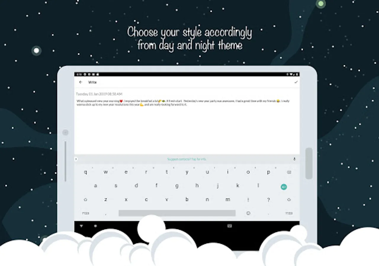 We often write diaries in night time, that is why we provide free night theme in this diary app. By this you can completely relax and write your diary at night time.