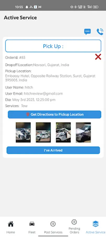 Get notifications for requests in your coverage area(s). Accept the job, assign a vehicle & driver, give an ETA, and head to the pickup location. Contact the customer through the app as needed.