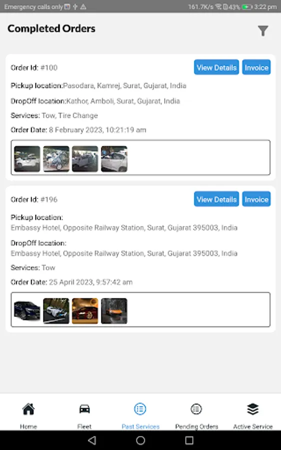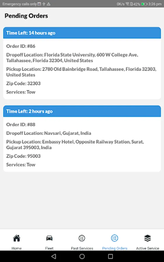 Service types (tow, winch, tire change, etc)