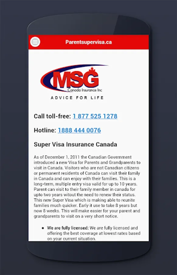 • Peace of mind: ParentSuperVisa will provide you the quality of its customer service and give you the peace of mind you want and deserve.