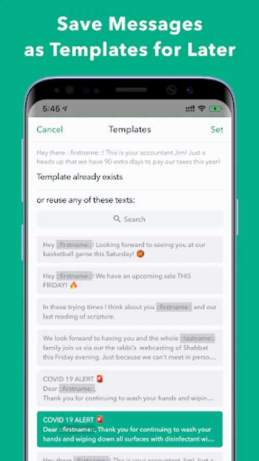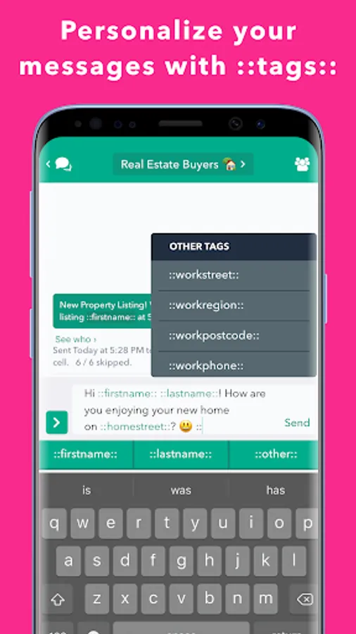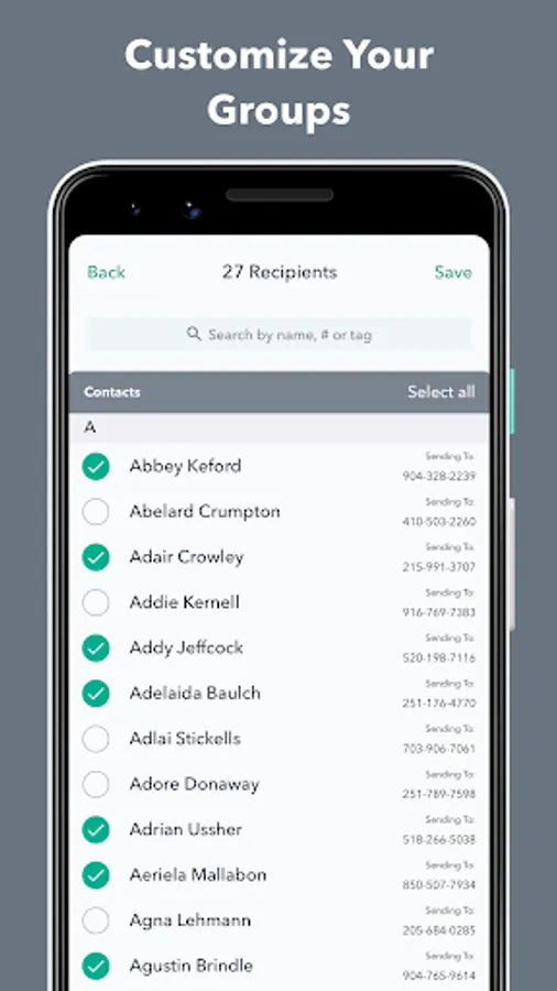 • Smart Selectors! Select recipients based on information on their contact in your phone book. Isolate people in an area code, location, or work for the same company in just a few taps and add them to a group!