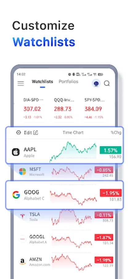 - Advanced charts for market analysis on the go: view real-time charts in landscape.