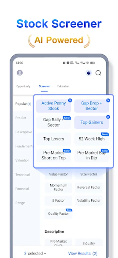 - Easy-to-use and comprehensive stock screeners based on AI recommendations