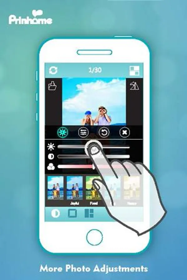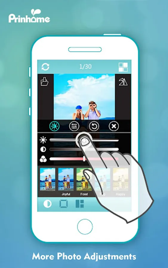 Prinhome App also provides various editing functions for you to tweak your photos with: color and size adjustments, cool filters, frames, collages and more!