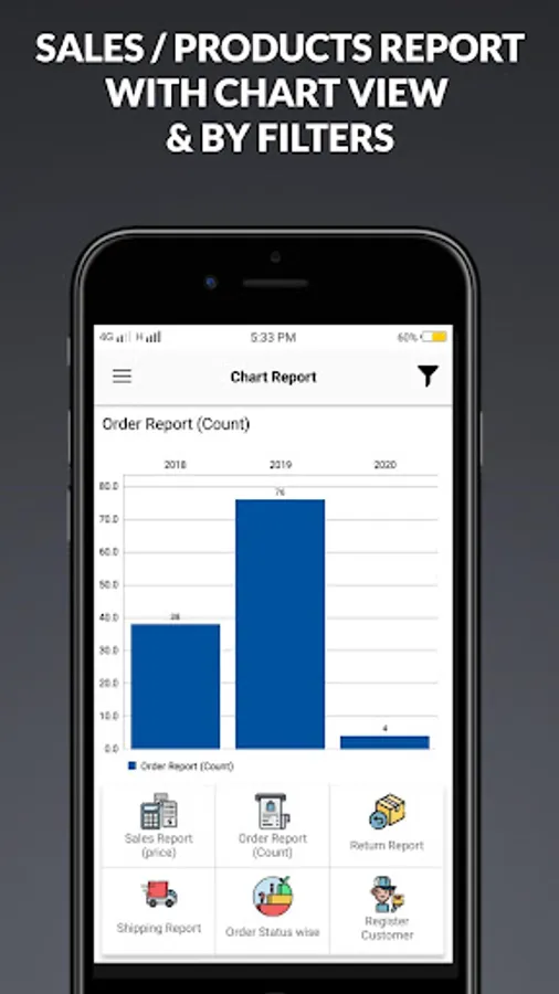 - Statistics of sales and products are displayed in the graph view.