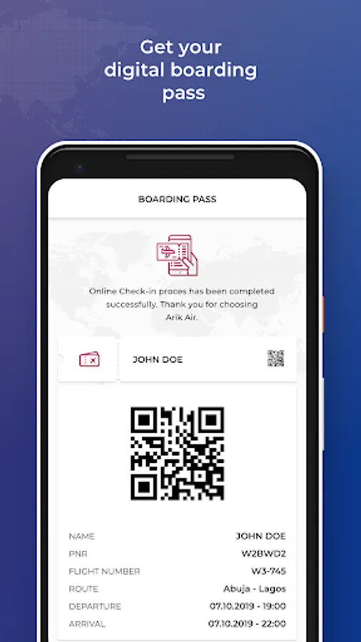 Right on the Arik air mobile app, you can access your boarding pass via email, or as a digital boarding pass on the app.