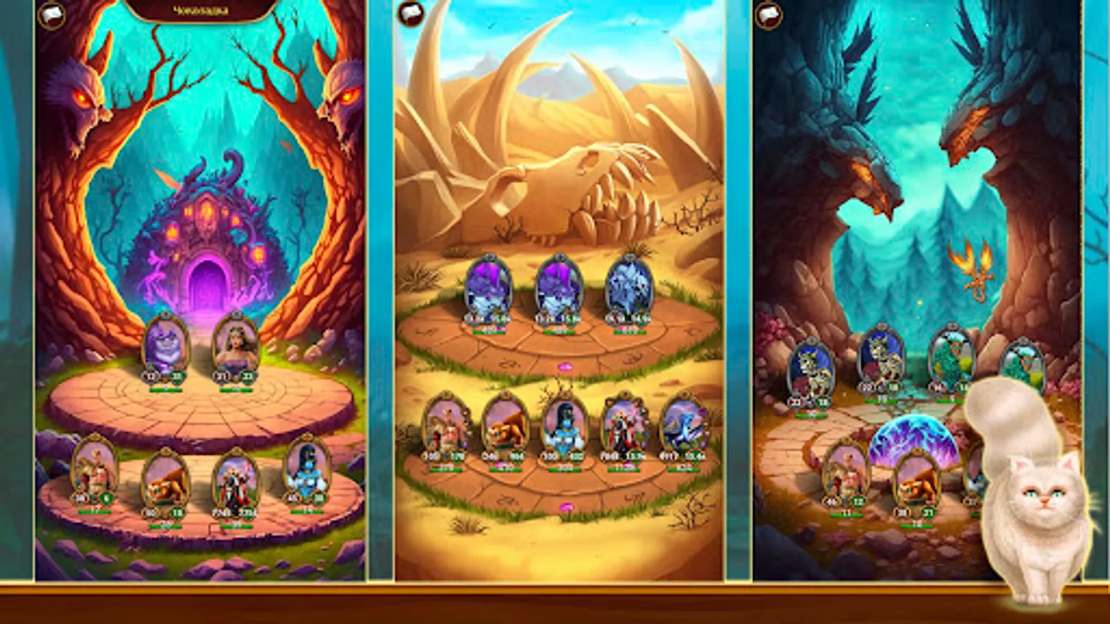 You will start the game with one character, but as the game progresses, you will be able to assemble a team and upgrade its skills. Look for artifacts and equipment, power up your team and make it invincible in hero battles! There will be battles with dragons, witchers, goblins and other mythological creatures that you will meet on your way. Heroes will use real magic to win turn-based battles. Upgrade your hero and his skills to defeat dragons and monsters. Win every turn-based battle and capture new territories of the Mirrorland!
