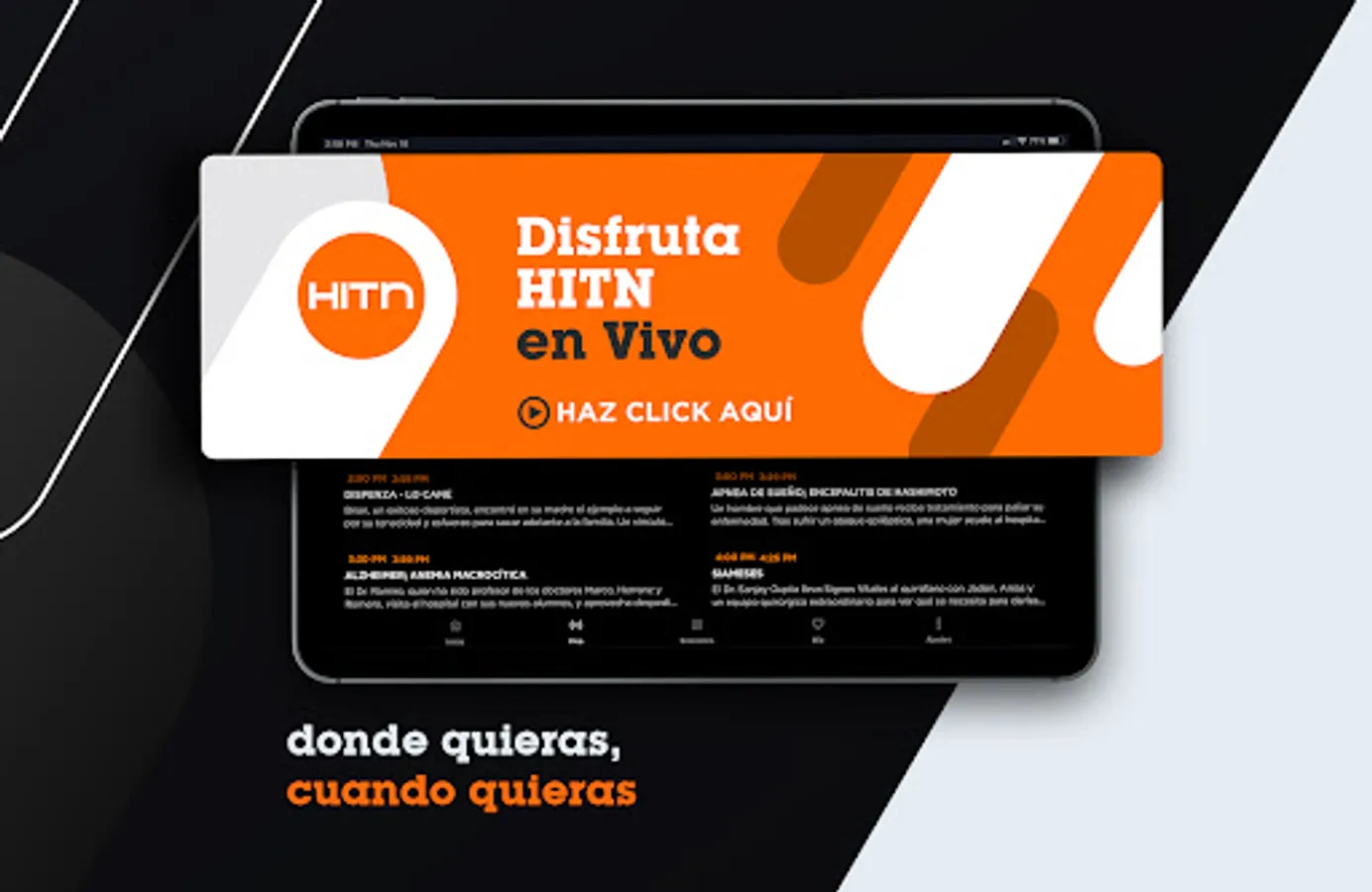 HITN TV is at the service of Hispanic families by offering a mix of smart and entertaining Spanish language content. Some of its programming genres cover essential topics, nature, science and technology, health and wellness and preschool material. All content has been carefully selected and includes properties of some of the most important producers in the world, such as BBC, Discovery, NatGeo, CNET and many more. HITN TV is a safe space that aims to maintain the union of the Hispanic family in the United States providing a common place for members willing and able to watch TV together. HITN TV reaches 44 million households throughout the United States. The channel is distributed through major cable and satellite operators as well as by several telecommunications companies and digital platforms.