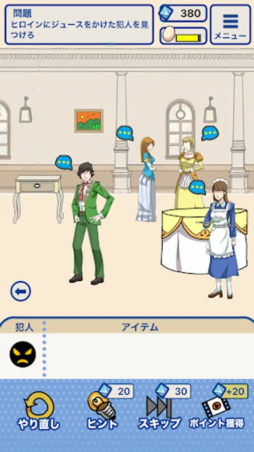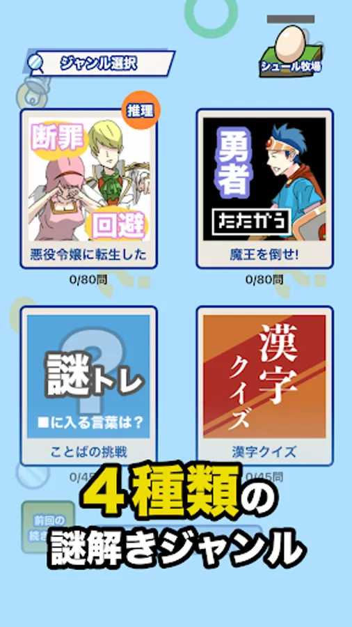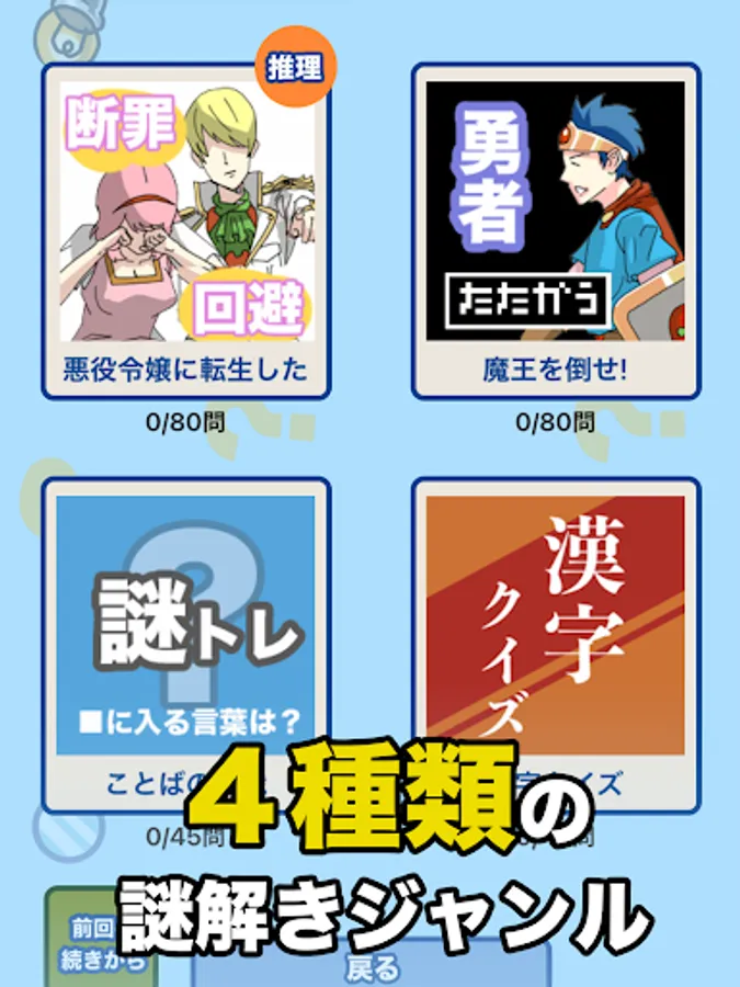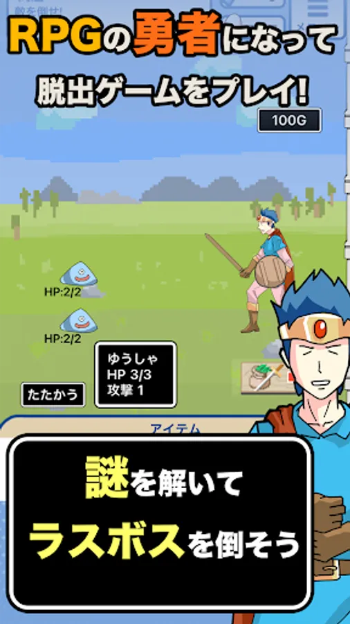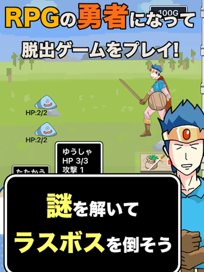 ・A mystery-solving and escape game in which the hero travels while defeating monsters, making friends, and getting treasures to defeat the demon king and aim for world peace.