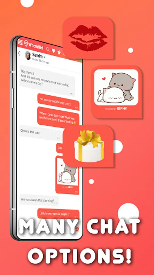 Whatsflirt is completely intuitive and offers innovations that you won't find anywhere else. Top up your coin credit quickly and easily to use all features and maximize your chances of charming chats and fun flirts.