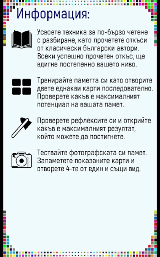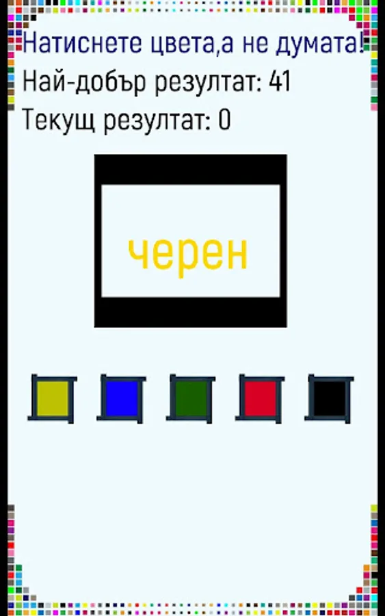 - a game that trains the brain's reflexes. The goal is to press the color you see, not the one you see.
