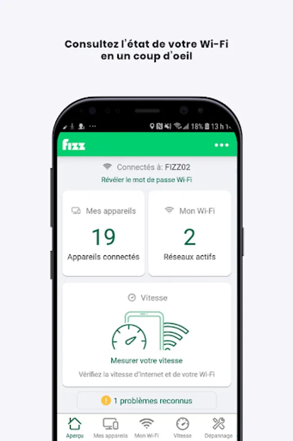 App to manage your Fizz Home Internet service and view important details,such as connected devices and troubleshooting alerts. Diagnose and optimize your home Wi-Fi network easily, directly from your smart device, without ever having to wait on hold for tech support.