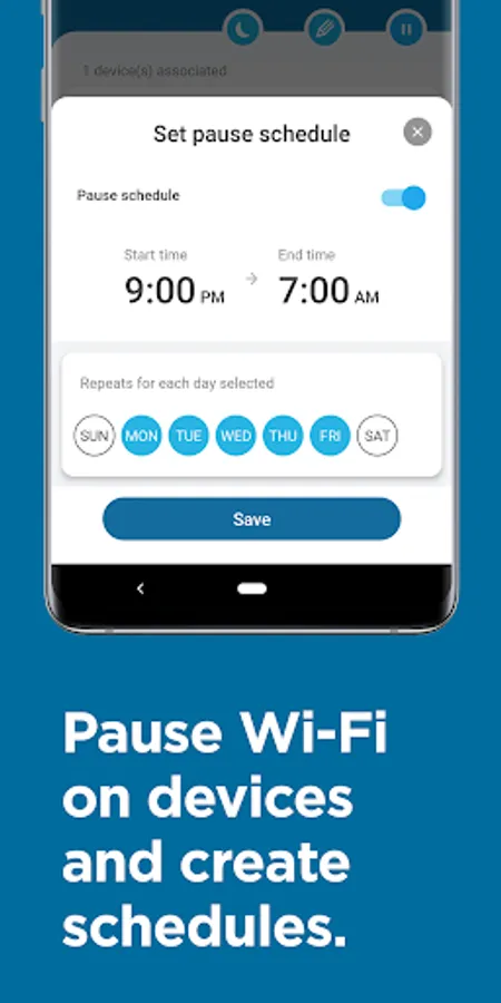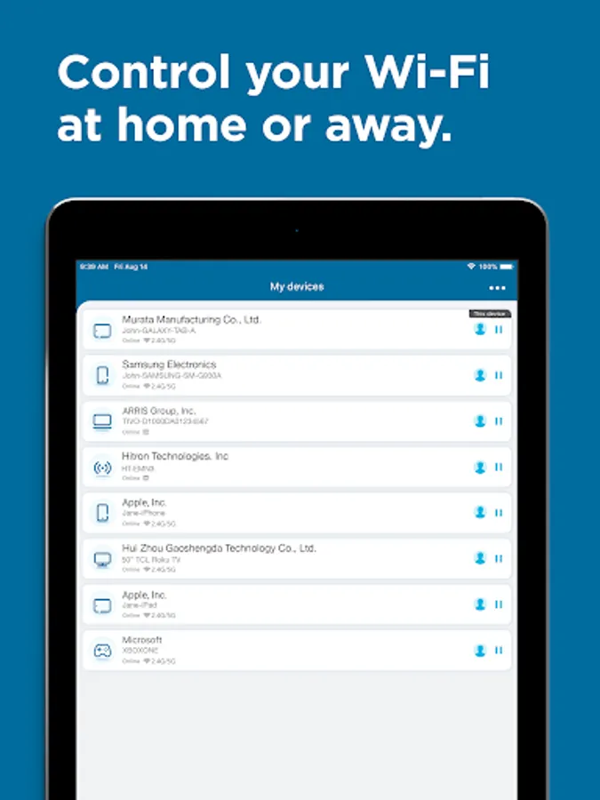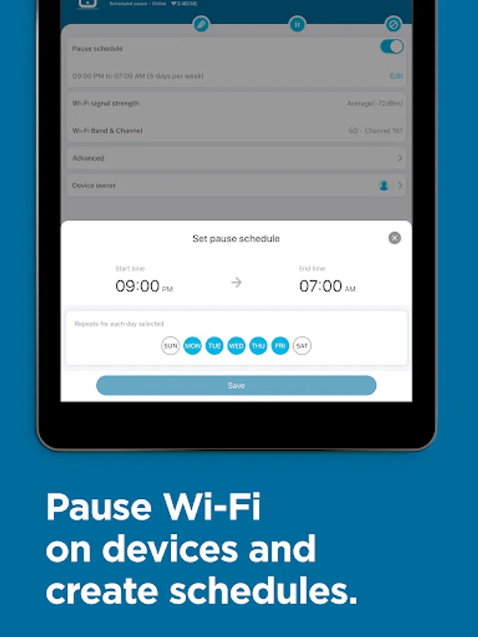 • Pause access for individuals on your network or set up pause schedules on your kids’ phones or tablets