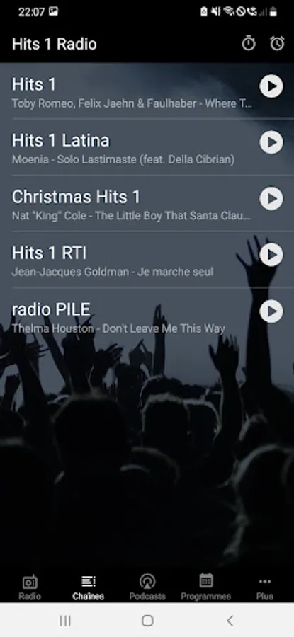 All our webradios Hits 1, Clubbin'One, Hits 1 latina, Christmas Hits 1, Hits 1 RTI