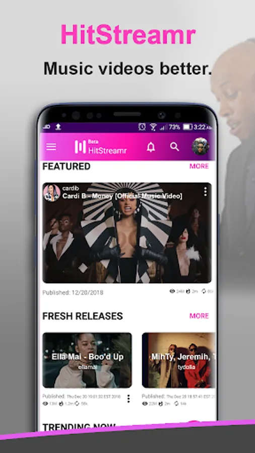 HitStreamr is THE mobile music video streaming app for musicians and music lovers. For the first time in history, a streaming solution has been created that doesn't attack the pockets of the artist or their fans.