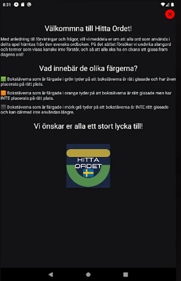 We carefully choose today's relevant words by starting from the Swedish dictionary and thus avoid slang words. Therefore, anyone can use the game for entertainment.