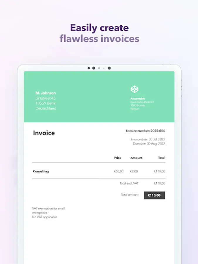 - You get fast answers to your questions. Just send us a message: support@accountable.eu
