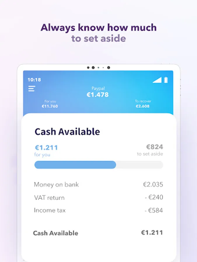 - Connect your bank account and see what you should set aside for taxes and what you can safely spend in real time.