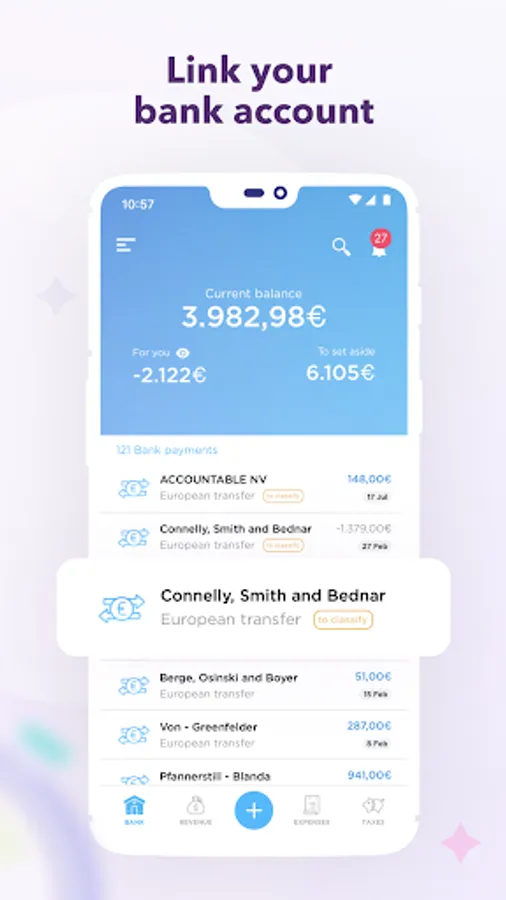 Never lose a deductible expense again –just scan your receipt and we make sure it gets deducted from your taxes. You also get tailored tax tips and can match the expense with the relevant bank transaction.