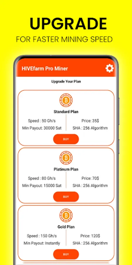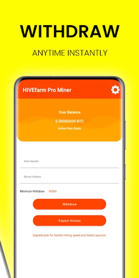HIVEfarm Pro Bitcoin mining app. Your device will keep mining in the background even if you minimize your app and lock the phone.