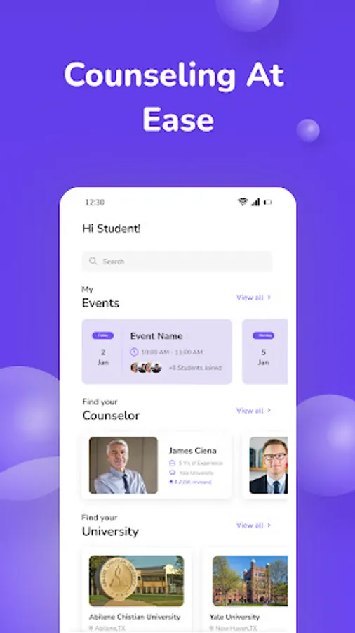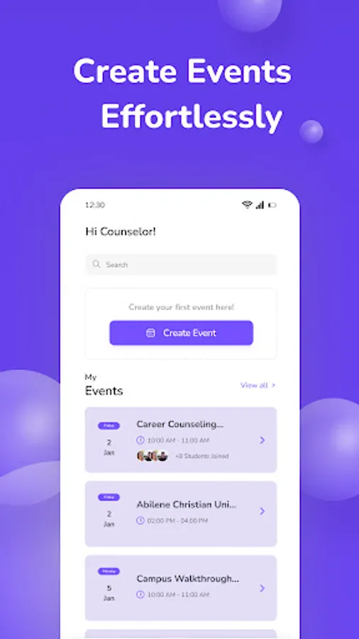 You can also join as a counselor, assist students, create new events, and explore the existing ones.