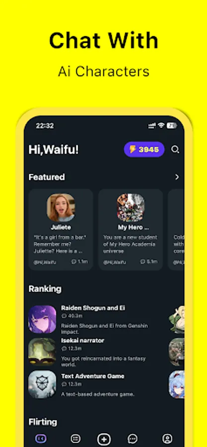 Engage in rich and complex conversations with Hi Waifu, your AI roleplay companion. Choose from an AI Friend, Romantic Partner, Virtual Wife, or Loving Boyfriend. Experience interactions as authentic and meaningful as those with real people.