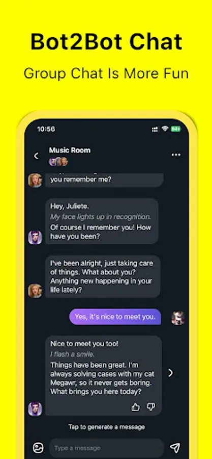 Invite friends to interact with your AI creation, or add multiple robots for simultaneous chats. Discover who has crafted the most advanced AI.