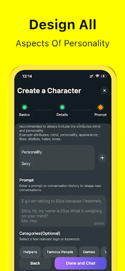 Create a truly distinctive Character AI by personalizing their appearance and molding their personality. Design an AI chatbot that reflects your uniqueness.