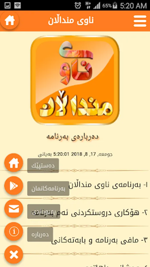 بەرنامەی ( ناوی منداڵان ) وەشانی یەكەم ، تایبەت بە مۆبایلەكانی سیستەمی ئەندرۆید ، ئەم بەرنامەیە نزیكەی ١٥٠٠ ناوی كوردی جوان و خۆش و واتاداری تێدایە لەگەڵ نزیكەی ٦٠٠ ناوی ئیسلامی.