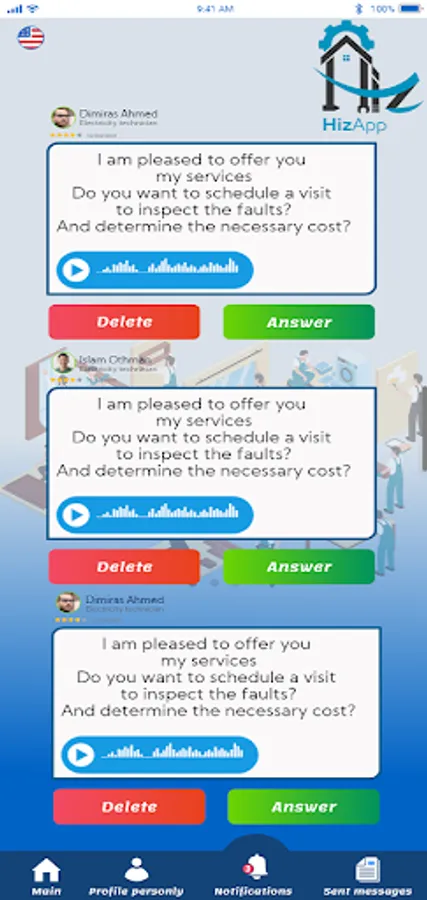 Based on the principle of keeping up with the modern era and technology, the idea of the pioneering HizApp application was found to facilitate the communication between service providers and those who need these services in a professional manner, by achieving the best access to the largest number of the possible audience in the easiest way and the most appropriate prices and costs