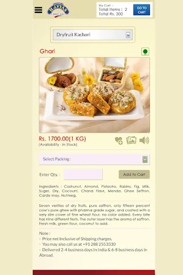 Our vivid varieties of mouth watering sweets & our very special ‘Dry fruit Kachori’ have become inevitable for Indians residing in different parts of the world. Why should you remain deprived of such delicacies? Come on have a taste & get addicted.