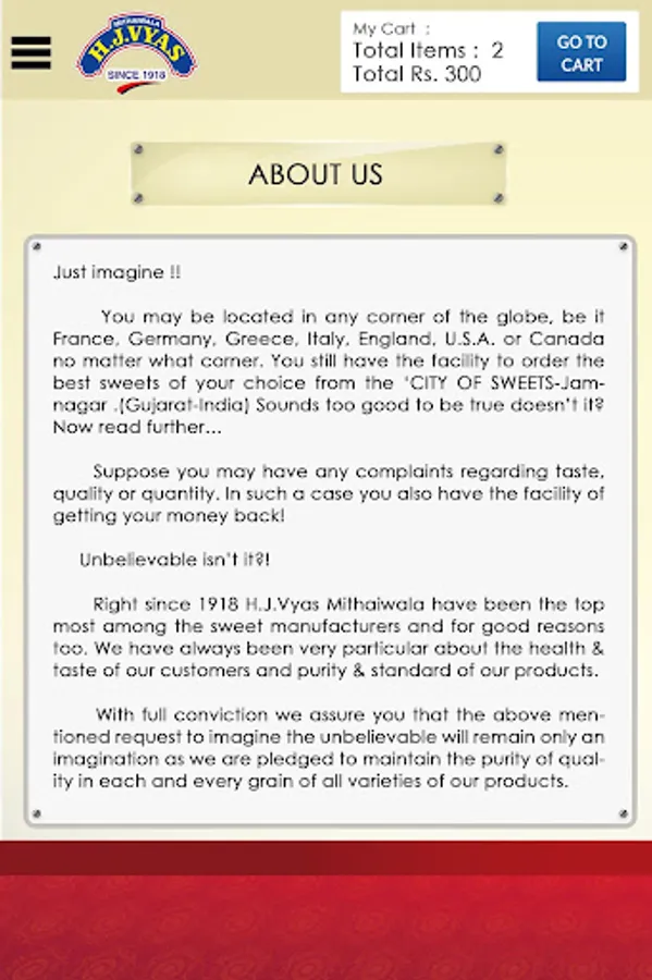 Right since 1918 H.J.Vyas Mithaiwala have been the top most among the sweet manufacturers and for good reasons too. We have always been very particular about the health & taste of our customers and purity & standard of our products.