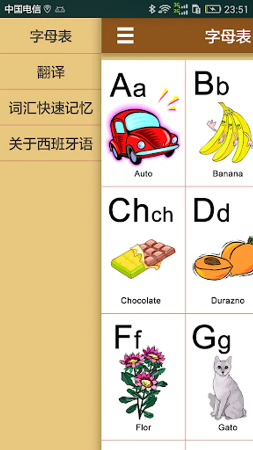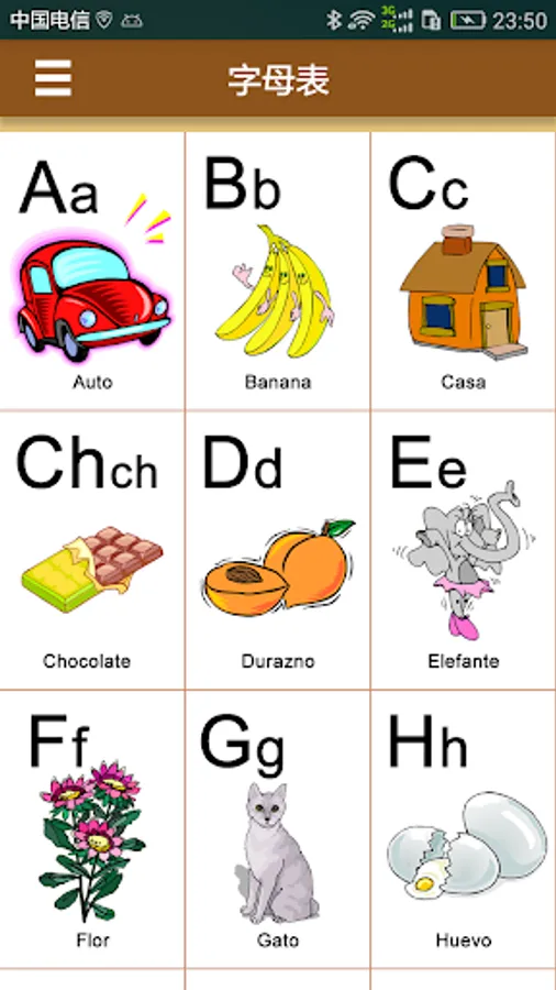 Spanish is the third largest language in the world, second only to Chinese and English. Spanish pronunciation is a more important part of Spanish learning. It is also an introduction to Spanish. This application allows users to learn Spanish at any time by displaying Spanish letters and an extended vocabulary. The first stop in Spanish learning helps you quickly master the pronunciation and writing of Spanish and lay the foundation for future Spanish learning.