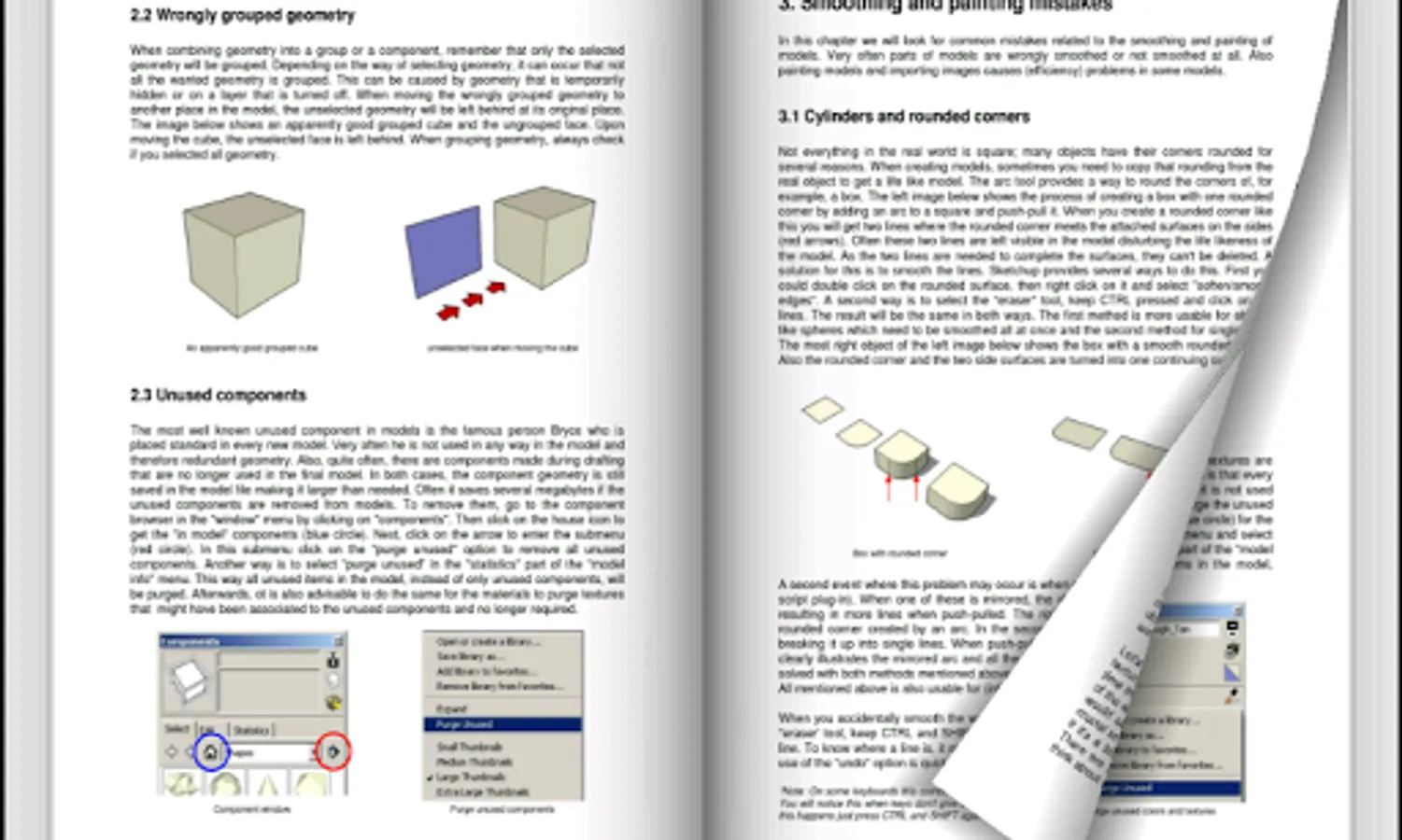 This Chapter of tutorial describes the most common mistakes that are made in a 3D model using the Google Sketchup program for 3D modeling. It shows what kinds of different mistakes there are, how to find or recognize them and how to fix them. The purpose of the chapter is to improve the quality of your models by showing what affects that quality. It should give you an idea about your own level of modeling and provides a manual to judge the quality of other people's models. This chapter not only looks at geometry mistakes but also mistakes that affect the efficiency, file size and cleanness of a model.