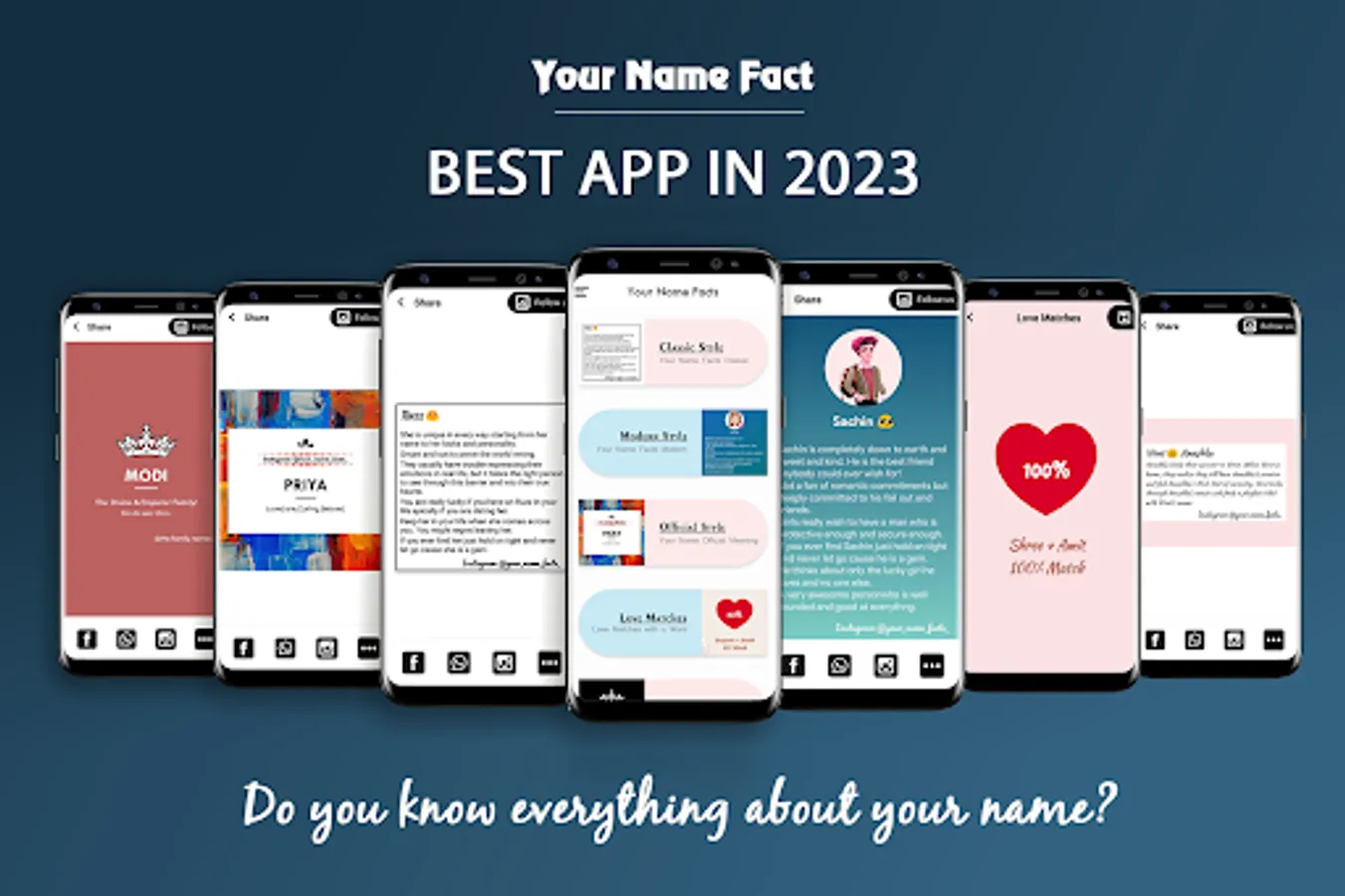 Your Name Facts is a totally free android application. It'll help you to check what is behind your name, what is the Official meaning of your name, what is your family name.