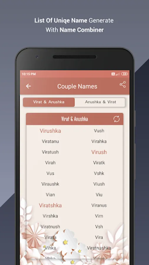 Combine your name with your loved one or friend and Generate the Unique Name with combinations.