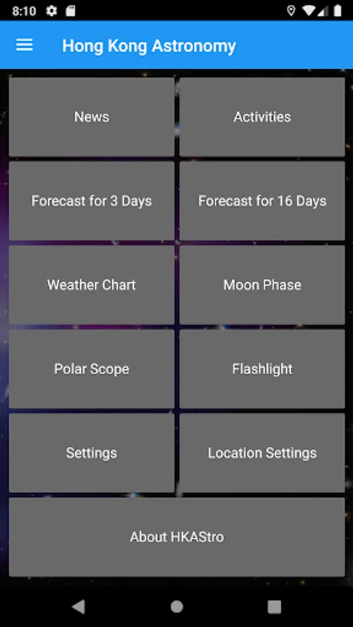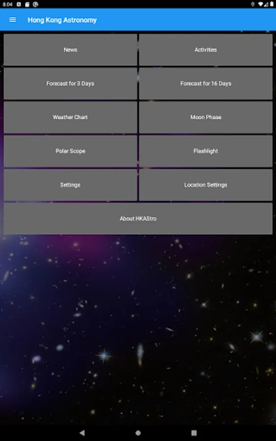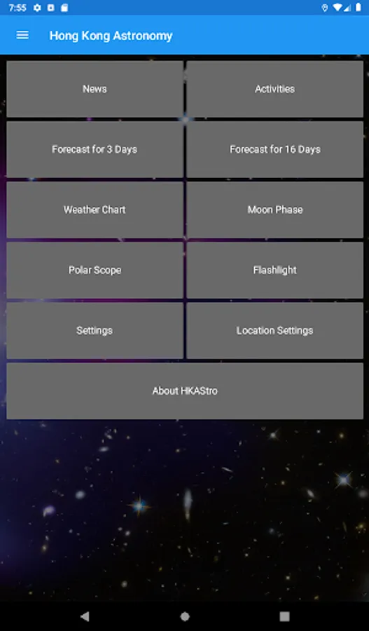 This app was developed by the Hong Kong Astronomical Society, it provides daily update astronomical news, astronomical activities or information.