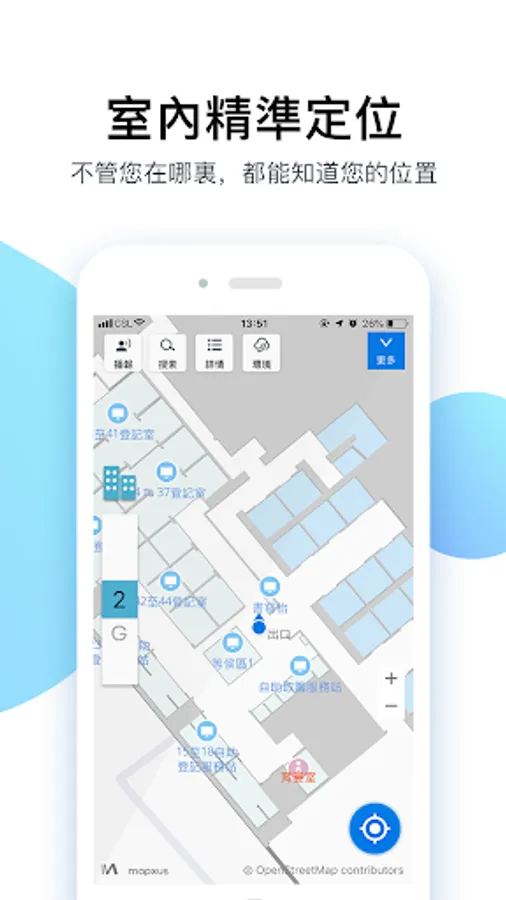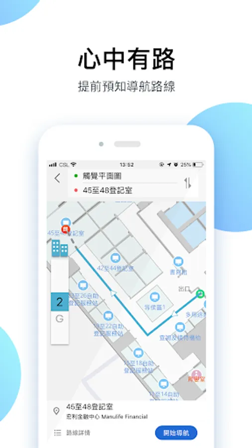 "Smart City Walk" is a mobile application for indoor navigation that is developed by Hong Kong Blind Union under the “Jockey Club Smart City Walk Project”. By applying different navigating technologies, the App shows current location of users and provides navigation to destination. It also provides floor plan and important information of indoor venues.