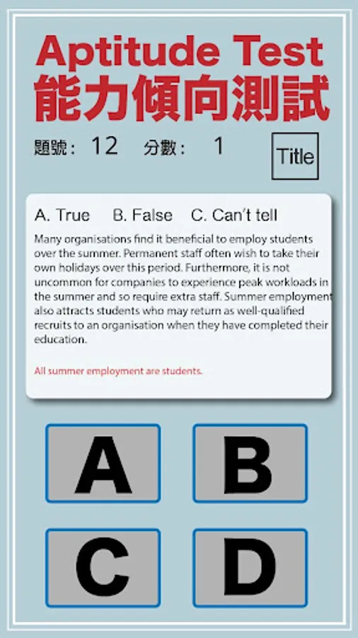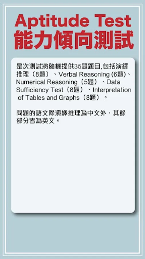 HK CRE Aptitude Test in Hong Kong civil service aptitude test topics include deductive reasoning, Numerical Reasoning, Data Sufficiency Test, Verbal Reasoning, Interpretation of Tablets and Graphs. And provide answers to explain, to help you understand the answers. Raiders answer to help you easily PASS.