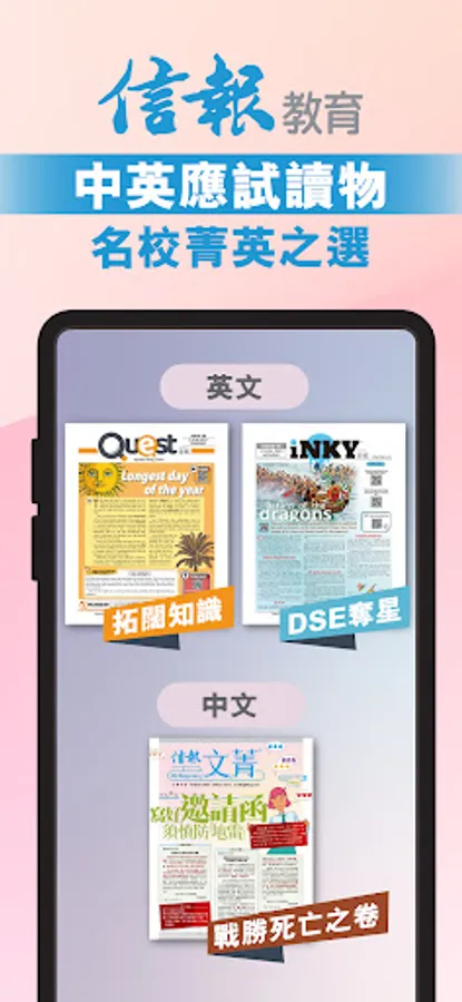 iNKY is a weekly English reading material tailor-made for secondary students who are preparing to take the HKDSE. It provides printed and online materials including a 4-page tabloid-sized periodic, articles that are read aloud, videos related to the subjects (from YouTube, TED Talks), mini-mock exercises, an online quiz, etc.