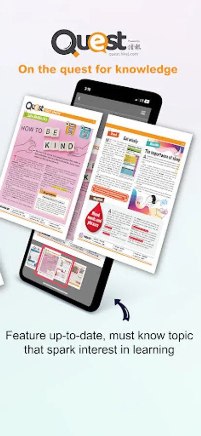 Quest is a weekly publication made for junior secondary students. It helps students improve their English skills through reading and listening exercises. The publication is a 4-page tabloid-sized periodic that is colorful and enjoyable to read. ide range of interesting topics and includes audio and video links for additional learning. It also provides updated news and current events from around the world.