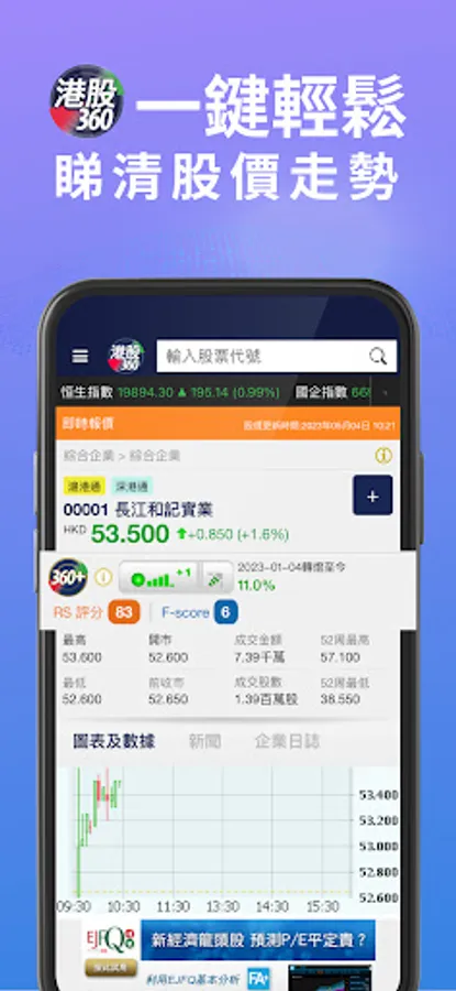 In addition to stock real-time quotes, rotating the phone to the horizontal screen will display multi-function options. The automatic "trend line" and "crab area" are clear at a glance, helping you to grasp the stock trend and "watch position", and formulate buying and selling strategies.