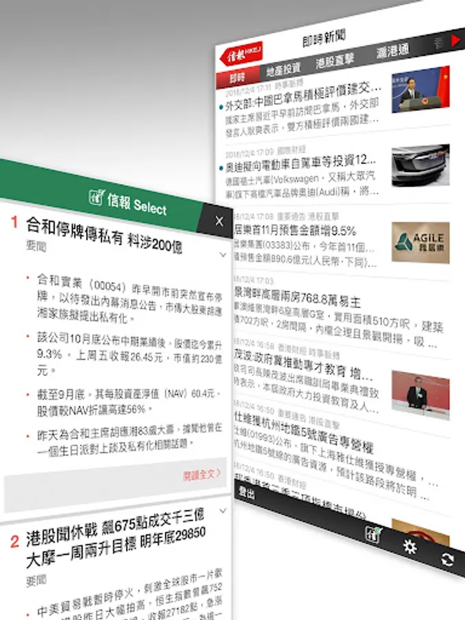 The contents of the mobile version of The Hong Kong Economic Journal include:
