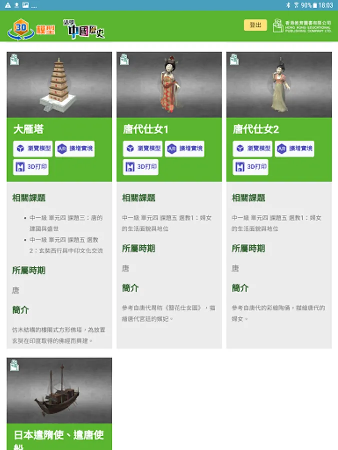In order to encourage students to make good use of mobile phones to learn, the "Learning Chinese History" series specially developed the "Teaching Picture 3D Link" mobile phone application-using 3D and AR technology to vividly present historical figures, objects and social and cultural features to increase students' Learning interest.